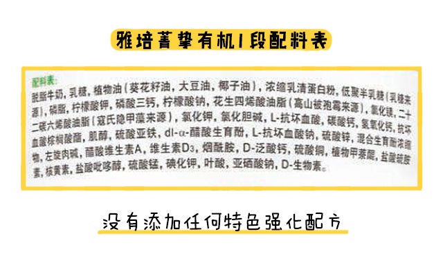 至于特色强化配方,它是指一些商家用作宣传自己产品特别添加进去的营养素。菁挚有机没有添加任何特色强化配方。