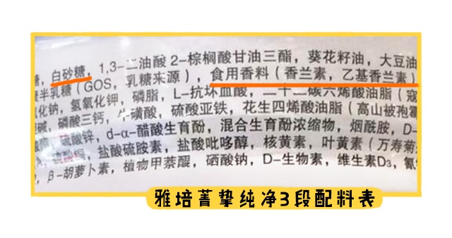 菁挚纯净从2段开始就添加了香精(香兰素、乙基香兰素)、白砂糖。