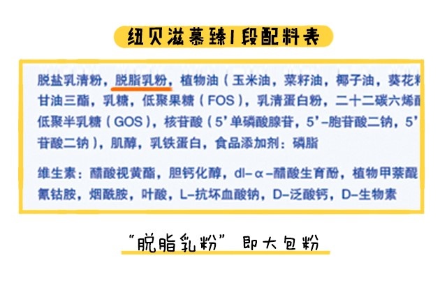 说完营养方面,接着继续说说奶源。纽贝滋慕臻各段数采用中国奶源,以大包粉兑水的还原奶作为奶基生产,还原奶经过二次加工,奶粉受到二次污染的几率较高,而且营养素的流失也比较多。