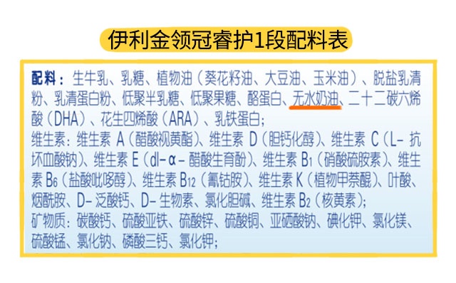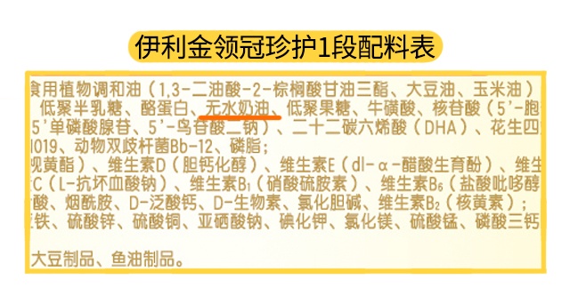 营养配方和奶源都说完了,最后是原料这块。大家要稍加注意,珍护和睿护都添加了无水奶油,在奶粉中添加无水奶油虽然可以丰富脂肪酸种类,但由于它来源于牛乳,牛乳脂肪球的直径比较大,不利于小月龄宝宝的消化吸收。