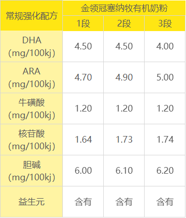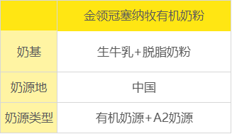 接下来我们再看看金领冠塞纳牧有机奶粉的原料和营养情况。