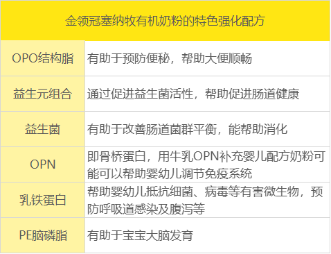 而特色强化配方,则是添加了OPO结构脂、益生元组合、乳铁蛋白、益生菌、OPN、PE脑磷脂六种,有助于孩子肠道健康、预防便秘、免疫调节以及大脑发育这四方面。
