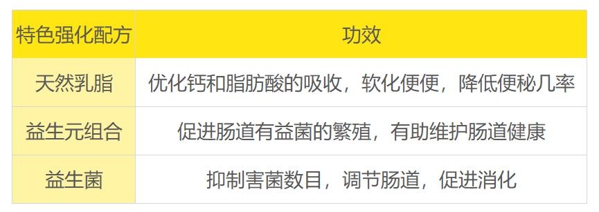 强化配方方面,白罐是6个基础强化配方都添加齐全,其中DHA含量在2.00-2.18 mg/100kj范围内,比绿罐和蓝罐要低不少。特色强化配方是添加了益生元组合和益生菌,这两个营养素有利于宝宝快速建立正常的肠道微生态环境。