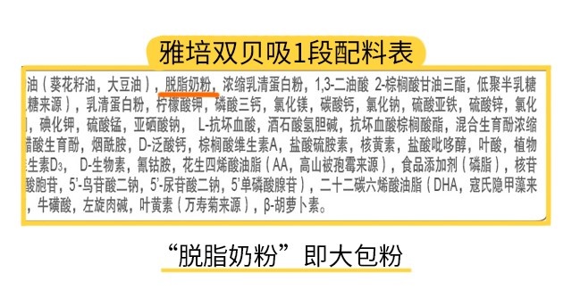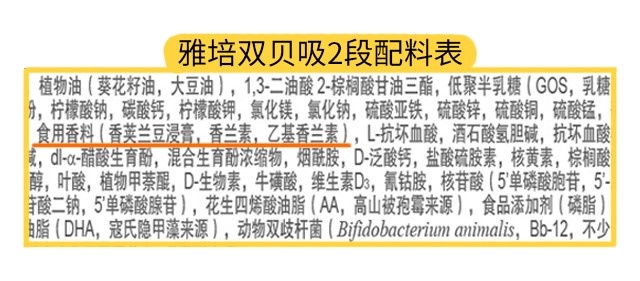 至于原料方面,双贝吸和很多雅培奶粉一样,都是2段之后添加有香精,香精会加重奶粉的口味,能挑起宝宝食欲,但长期食用容易使宝宝对口味产生依赖导致偏食,之后可能对口味清淡的奶粉或食物可能比较难接受,所以最好是能免则免。