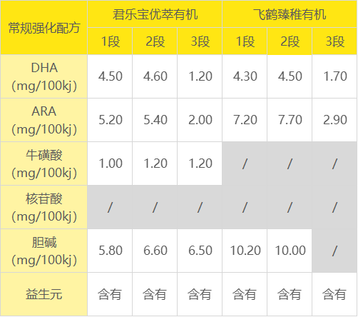 首先,市面上大多数普通牛奶奶源都添加齐全的6项常规强化配方,这两款奶粉都有缺乏的,具体可看下表。