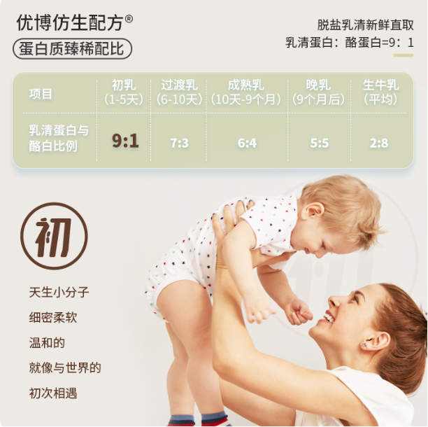 优博和优博瑞慕奶粉,奶粉的奶源既不是羊奶奶源,也非A2奶源,但其奶源在好吸收方面的表现非常理想。它的乳清蛋白与酪蛋白的比例按照母乳初乳的9:1比例来生产,这一比例的选择有助于更好地消化蛋白质。相比市场上绝大多数奶粉按照母乳成熟乳的比例6:4来生产,优博奶粉的乳清蛋白与酪蛋白比例的独特性非常罕见。这样的配方设计有助于宝宝更好地吸收和消化蛋白质,提供充足的营养支持。